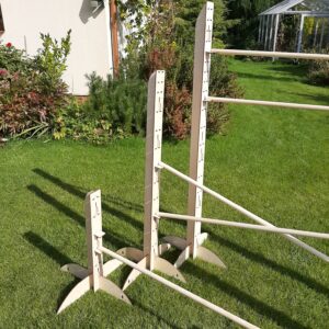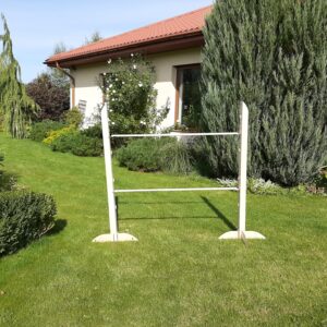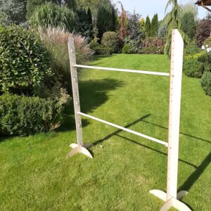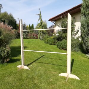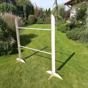 The training obstacle is an author’s Funtree.eu project many times tested in our garden. It is a set containing two bars that can be hung at a height of 20 cm to 120 cm, at the intervals of 10 cm, and 120 cm to 150 cm, with the pole moving up every 5 cm. You can buy additional bars from our website if you want to make your obstacle more complex.
