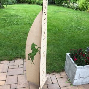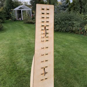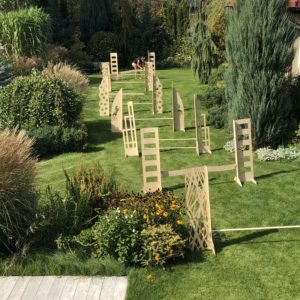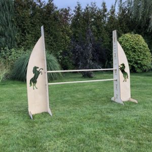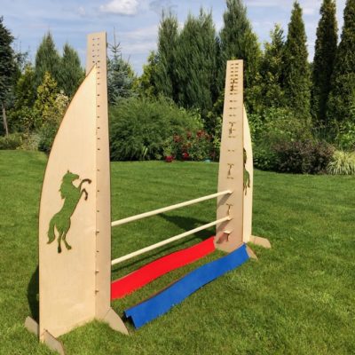 Our HORSE obstacle 140 cm is an enlarged version of its predecessor. A set with two poles that can be hung every 10 cm between 20-90 cm, every 5 cm between 90-120, and every 2.5 cm between 120-140 cm! This setting is the result of our daughters’ continuous improvement of obstacles, which we try to make this task as easy as possible.