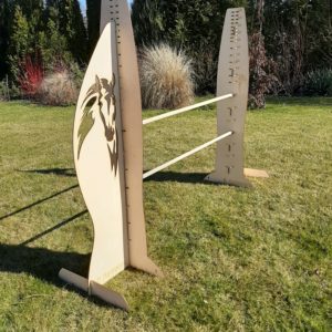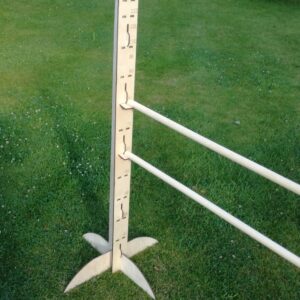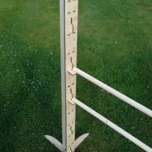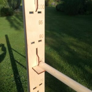Przeszkoda TRENINGOWA to autorski projekt Funtree.eu wielokrotnie przetestowany w naszym ogrodzie. Zestaw z jednym drągiem, który możemy zawiesić na wysokości od 20 cm do 120 cm. Można ustawić w odległości co 10 cm w przedziale 20-90 cm i co 5 cm w przedziale 90-120 cm. Mniejsze przedziały na samej górze ułatwiają stopniowe pokonywanie własnych rekordów i wspinanie się na wyżyny hobby horsingu! Istnieje możliwość dokupienia belek.