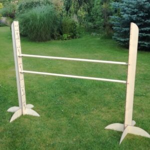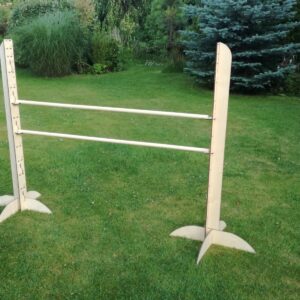 Przeszkodę możesz dowolnie pomalować, według swoich preferencji – drewno stanowi do tego znakomitą bazę! Jest łatwa w składaniu, a po złożeniu zajmuje bardzo mało miejsca.