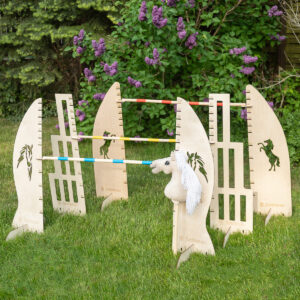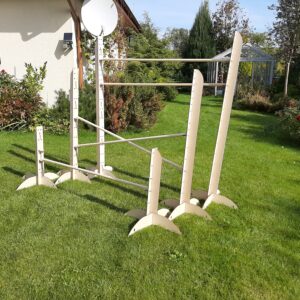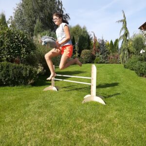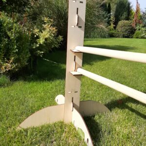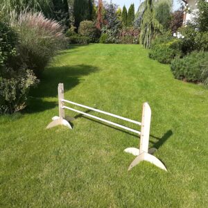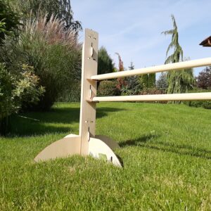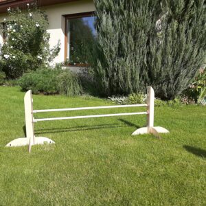 Przeszkodę możesz dowolnie pomalować, według swoich preferencji – drewno stanowi do tego znakomitą bazę! Jest łatwa w składaniu, a po złożeniu zajmuje bardzo mało miejsca.