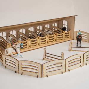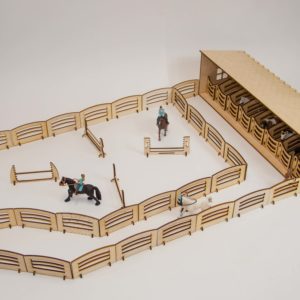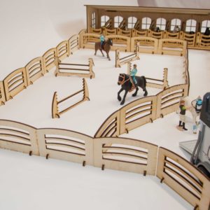 - This set includes: “English” stable + 10 paddock fences + 8 saddle handles + 3 obstacle