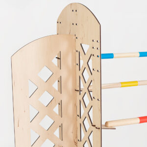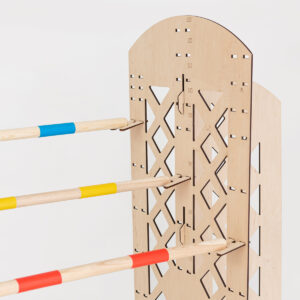 The obstacle can be painted according to your preferences – wood is a great base for personalization! The obstacle is easy to assemble and takes up a little space.