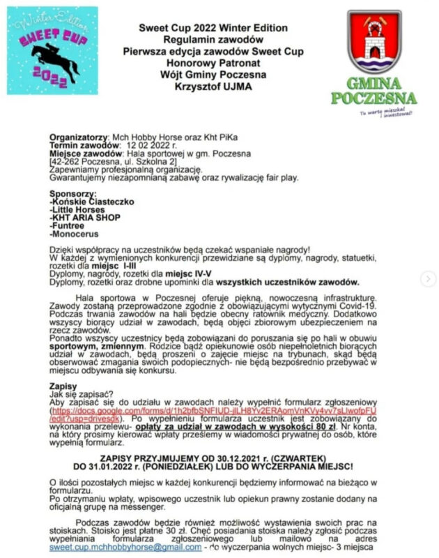 Więcej informacji na stronie zawodów @sweet_cup_12.02.2022
